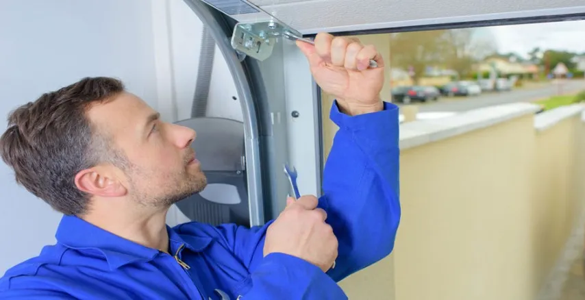 “Certified garage door technician performing opener repair”